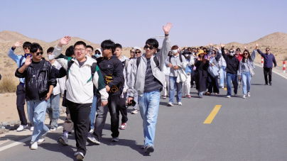 为强健体魄、磨炼意志,志愿服务队组织了集体6公里沙漠徒步活动。队员们迎着风沙,相互鼓励,携手前行。壮美的大漠风光吸引队员们不时驻足欣赏、拍照,在终点处,大家虽然疲惫却满怀喜悦地高声欢呼。支教师生们不仅在挑战自我中锻炼了体力与毅力,也更直观地体会到了边疆自然环境的特征与守护边疆的不易。