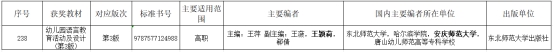 11月3日,国家教材委员会公示了第二届全国教材建设奖拟奖励名单,我校教育科学学院王颖莉副教授作为副主编编写的《幼儿园语言教育活动及设计(第3版)》拟获全国教材建设奖(职业教育与继续教育类)二等奖。