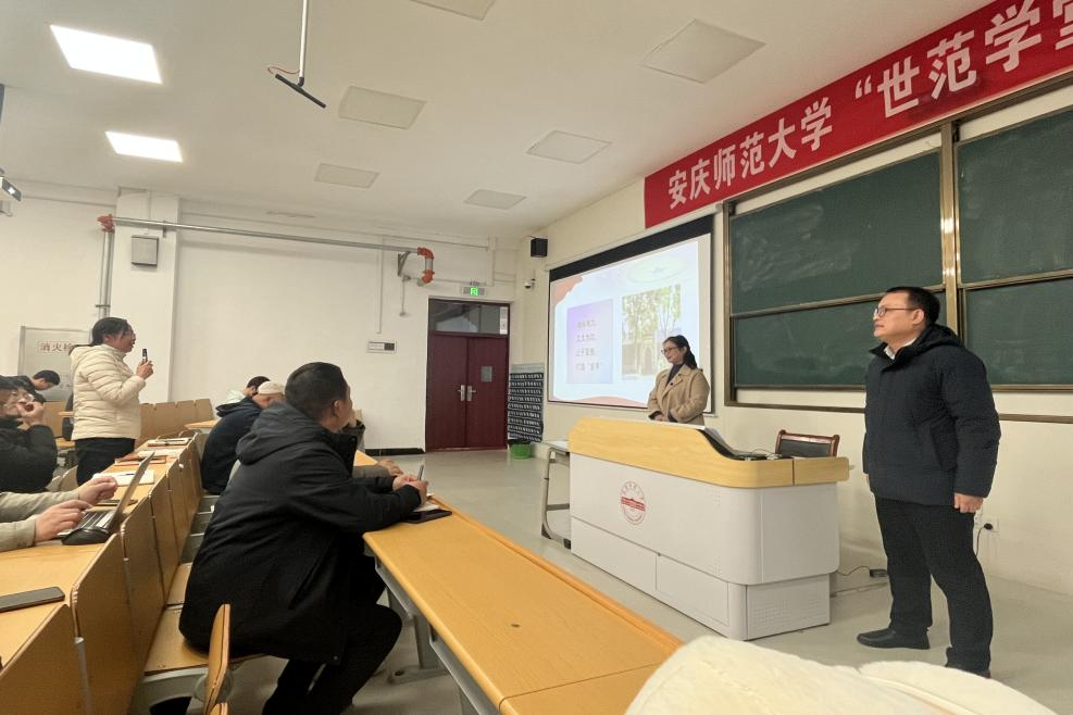 11月19日下午,“世范学堂”第九期讲座在文溯楼C108顺利举办。此次活动邀请了安徽省教学成果一等奖获得者、安徽省线上教学名师、安徽省思政课教学能手王翠萍教授作报告分享。各学院教学院长、教研室主任、近三年新入职教师共计300余人参与讲座。