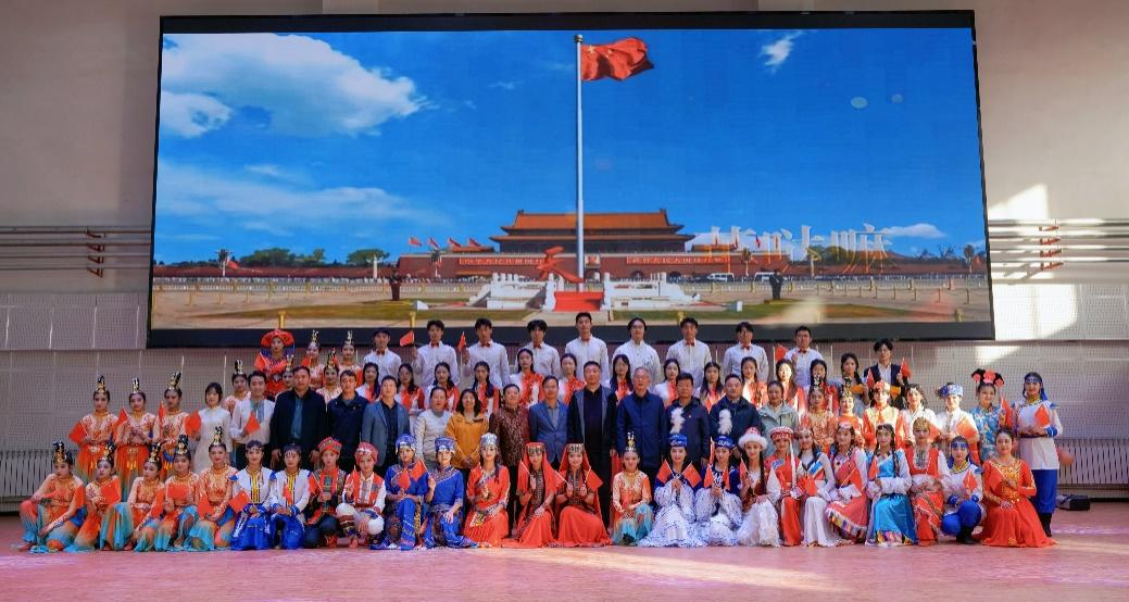 音乐会在《歌唱祖国》的全场大合唱中圆满落幕。现场师生在主持人引领下,挥动国旗、放声高歌,会场瞬间奔涌成一片涌动的红色海洋。激昂澎湃的歌声里,汇聚着对伟大的祖国和党的深情礼赞。